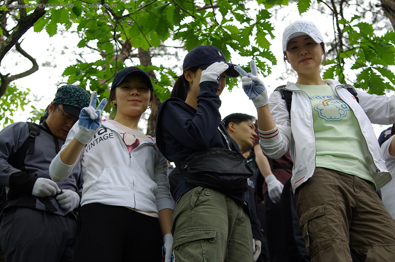 손받닥에 파란 고무가 붙어 있는 하얀 목장갑이 선명하게 "브이"를 그리고 있군요. 기획팀에서의 세심한 준비 덕분에 산행이 한결 수월했습니다. 항상 고생하는 기획팀 멤버들에게 잠시 감사의 묵념을.