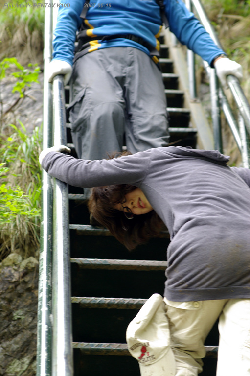 밧줄타고 내려가기 위해 줄서있는 직원들, 뭐 이정도 쯤이야 하는 표정이네요. 가운데 얼굴 가린분은 부모님 몰래 오셨나 봅니다.
