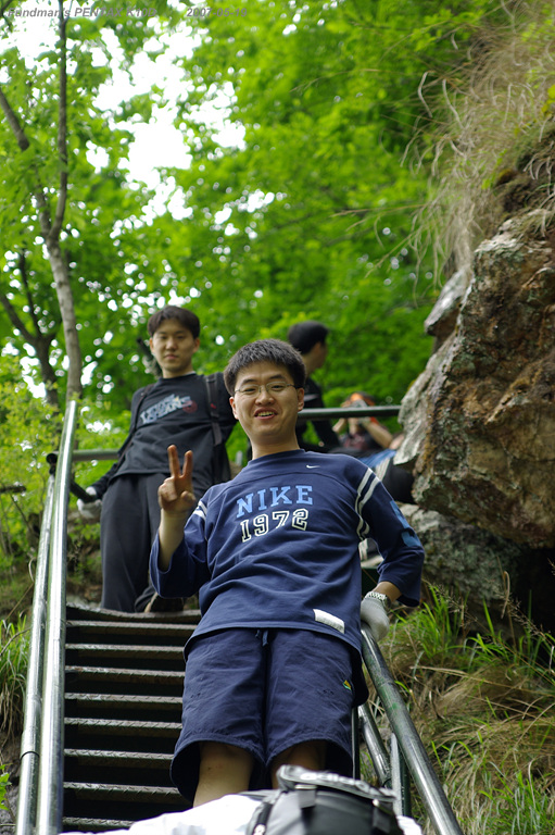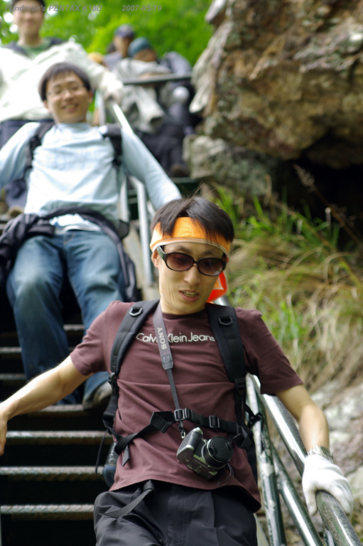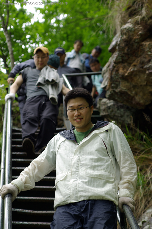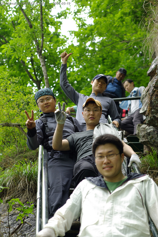 전날의 취기가 아직 가시지 않은채 비온 돌산을 등정한다는 불안감도 없이 새로운 도전앞에 다소 들떠있는 본부 사람들. 이곳 팔봉산 팀웍 키우기에는 딱 좋은것 같은 많은 워크삽을 준비중인 많은 단체들에게 강하게 추천합니다.~~