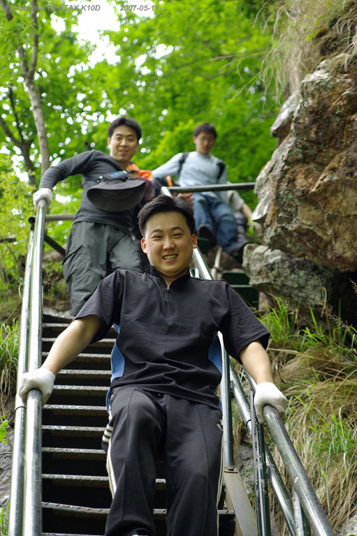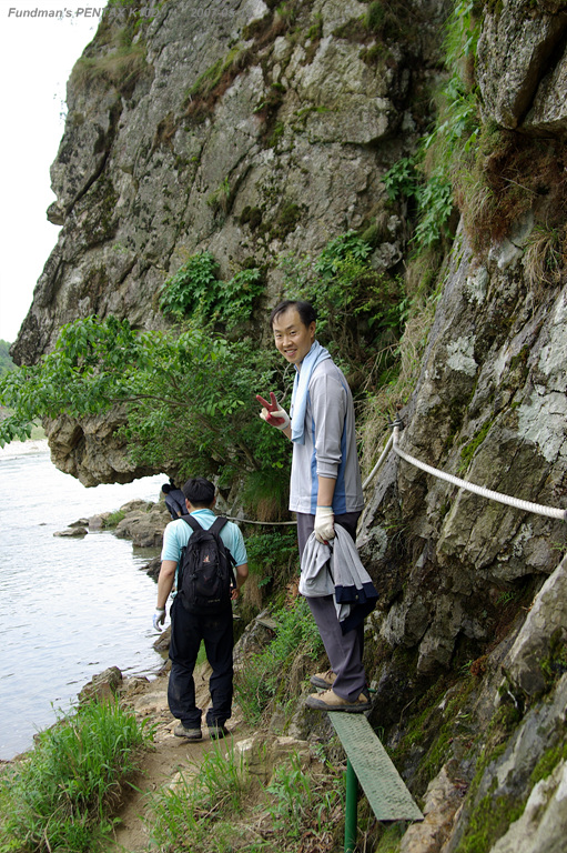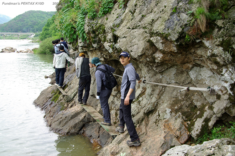 이건 또 뭐죠? 하산하고 보니 출발지의 반대편, 그래서 이렇게 바위산을 빙~ 돌아서 출발지로 돌아가고 있습니다. 역시 돌아갈때도 밧줄을 잡고 유격하듯이 정말 잼난 코스네요.