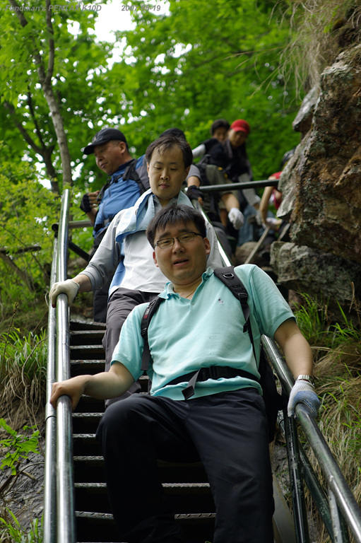 끝없는 하산길. 밧줄 아니면 철계단 아니면 바위….3중 하나로만 이루어진 급경사 하산길입니다.