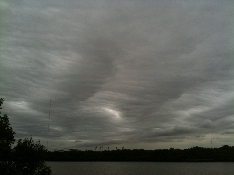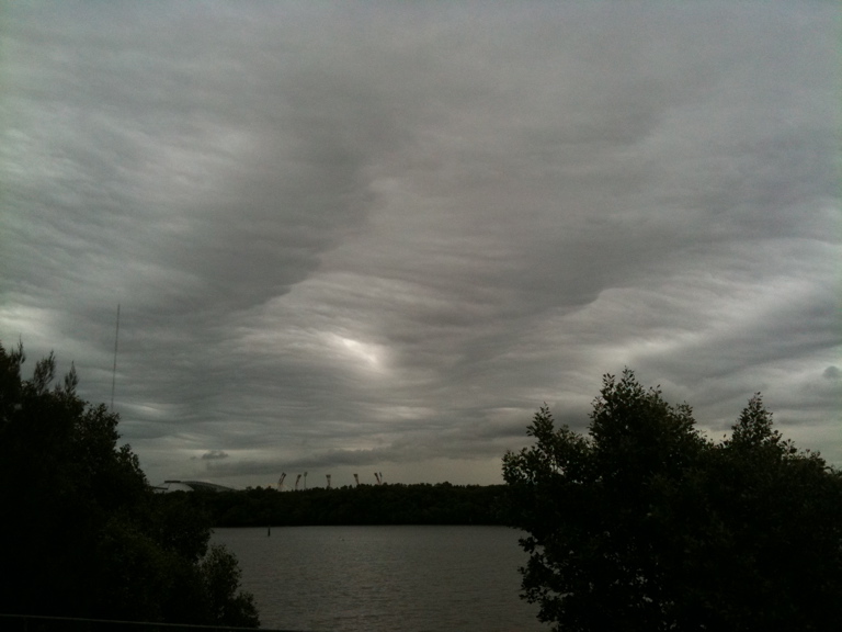 아래는 또 다른날 근처 공원을 산책하다가 우연히 만난 넘실거리는 구름이다. 이럴때는 마치 인셉션에서 땅이 말려 올라가 하늘과 하나가 되는것 처럼 하늘에 바다가 꺼꾸로 메달려 있는 것 같다. 때로는 이게 땅으로 넘쳐 떨어져 세상이 닫혀 버리는건 아닐까 하는 착각과 공포를 느끼게 하기도 한다. 사진으로는 다 보여줄 수 없는 신비한 느낌이다.